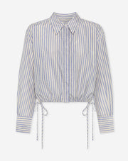 BlauwDer Rock ist aus einem cremefarbenen Stoff gefertigt und hat blaue Streifen sowie kleine silberfarbene Strasssteine überall. Der Rock hat einen ballonförmigen Saum und lässt sich perfekt mit der passenden Bluse, der Maeva-Strassbluse, kombinieren!