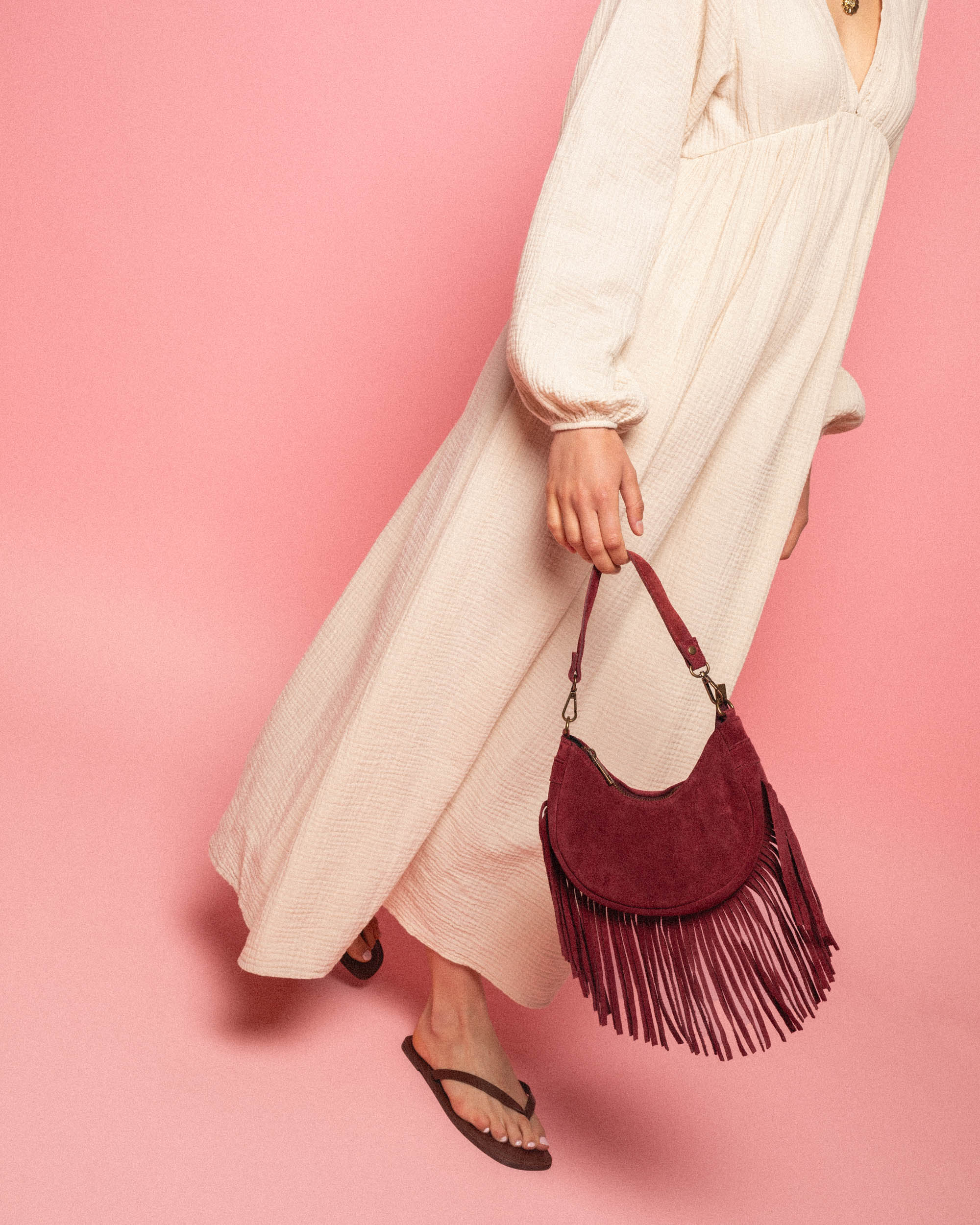NAOMY FRINGE SUEDE BAG BURGUNDY