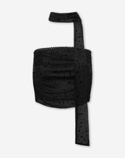 STRAPLESS DOTS SCARF TOP BLACK