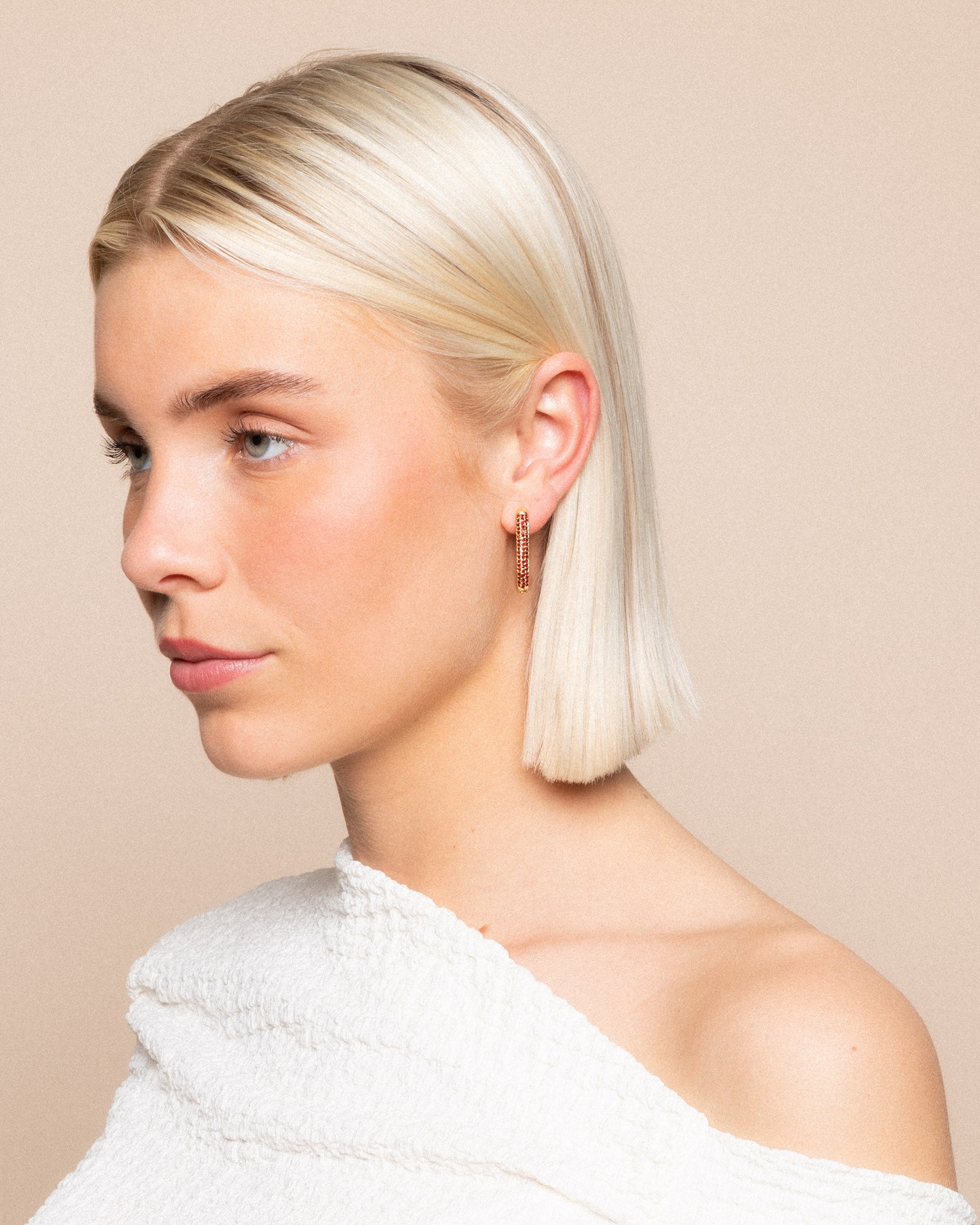 EVA DIAMOND SQUARE HOOP EARRING BURGUNDY