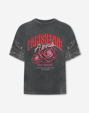 PARISIENNE SEQUIN SLEEVE TEE ACID GREY