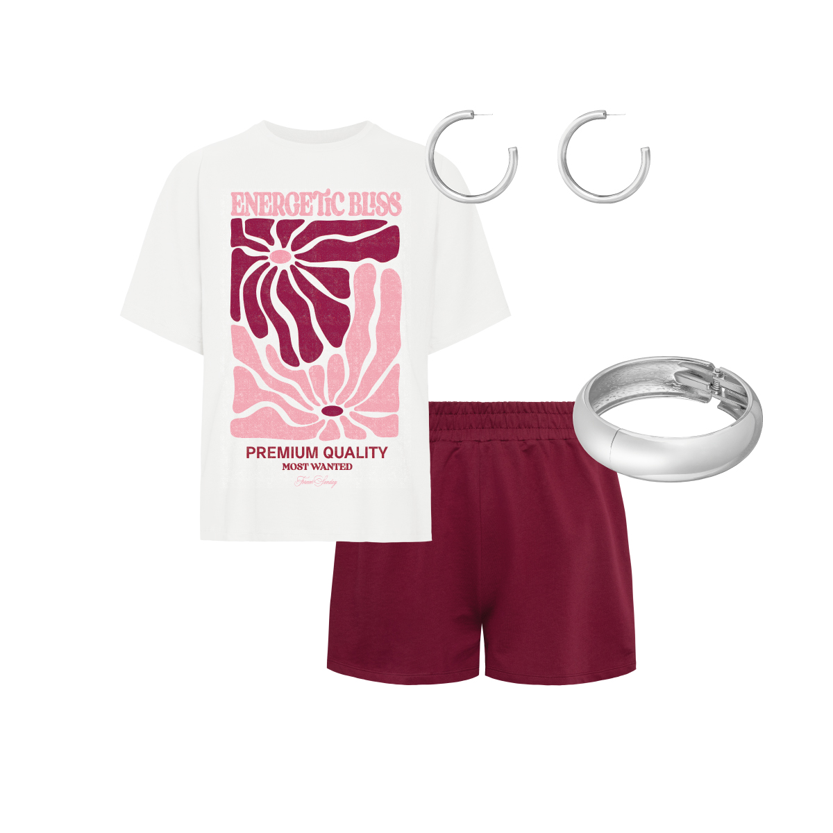 The shorts have an elastic band around the waist and are the perfect match with the Cropped Sweat Tee.
