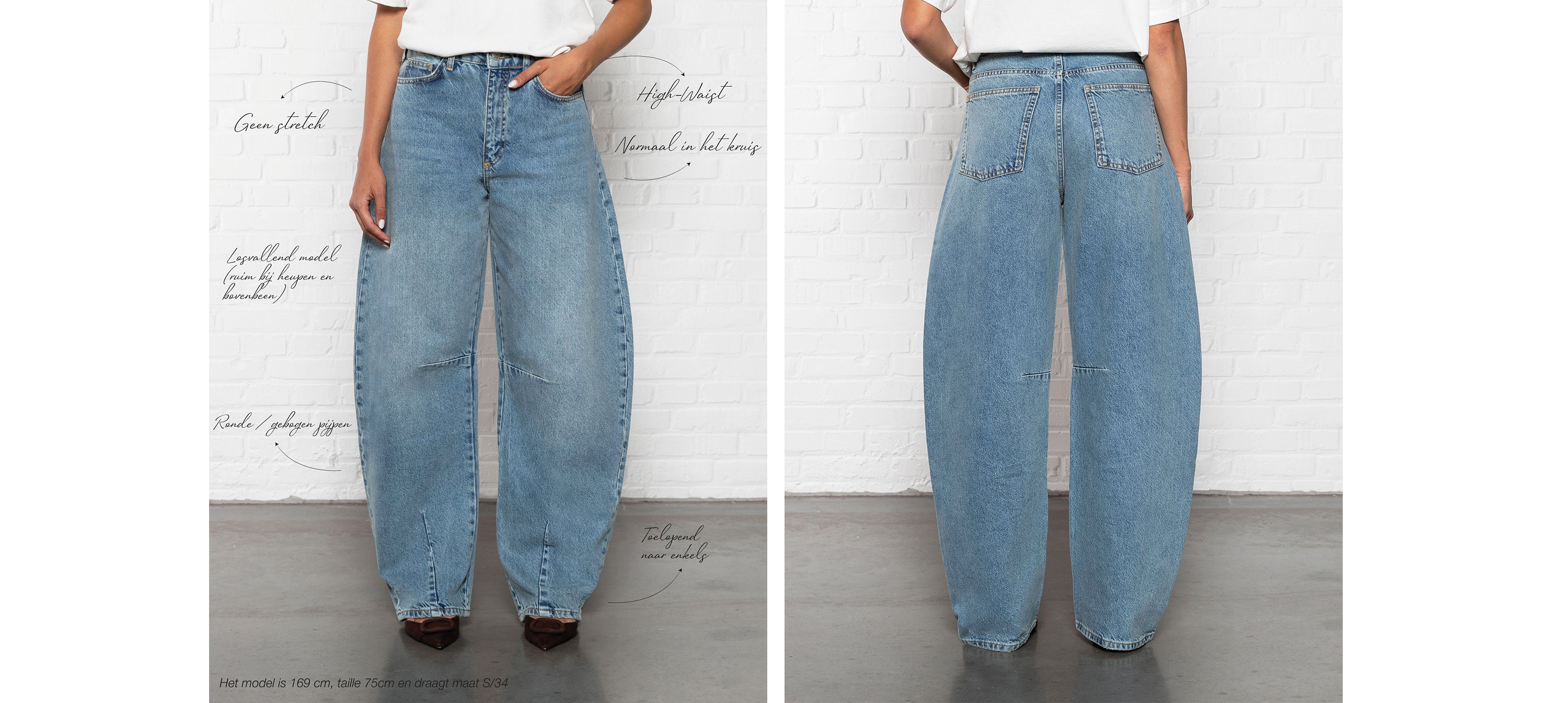 Compared to straight leg or wide leg jeans, the barrel fit is really about the shape. The high waist emphasizes your waist, while the wider leg gives a casual look. It is a pair of jeans that makes a bit more of a statement, yet is still easy to combine. And let’s be honest: a pair of jeans that is both comfortable and looks like you have thought through your outfit is simply one you want in your wardrobe.
