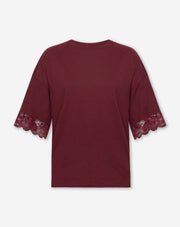 LACE SLEEVE OVERSIZED TEE BURGUNDY $31.00
