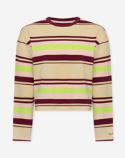LAINA STRIPED LONG SLEEVE CROPPED TEE BURGUNDY