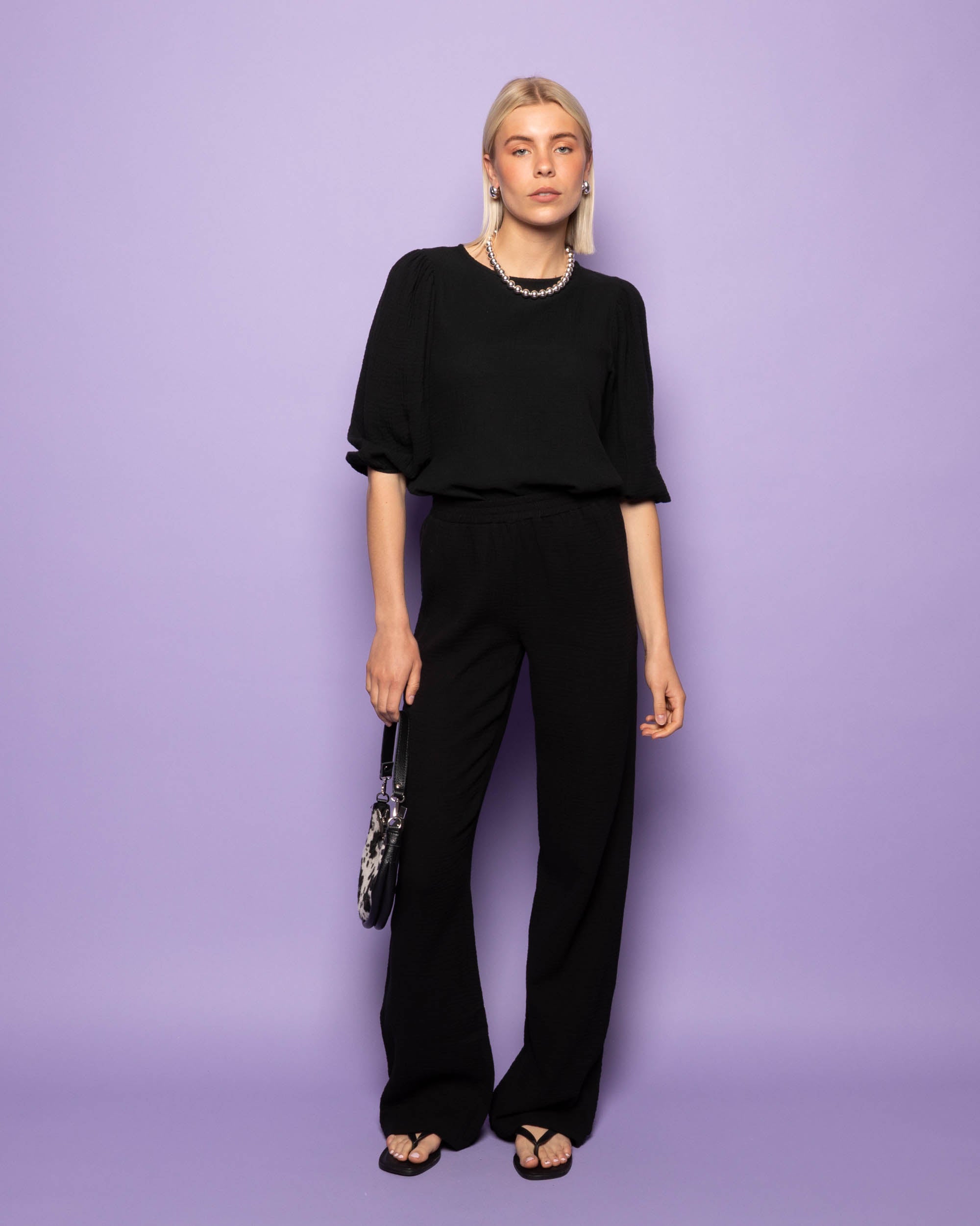 MELODY MOUSSELINE STRAIGHT LEG PANTS BLACK