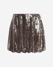 TRANSPARENT SEQUINS BUBBLE HEM SKIRT BROWN