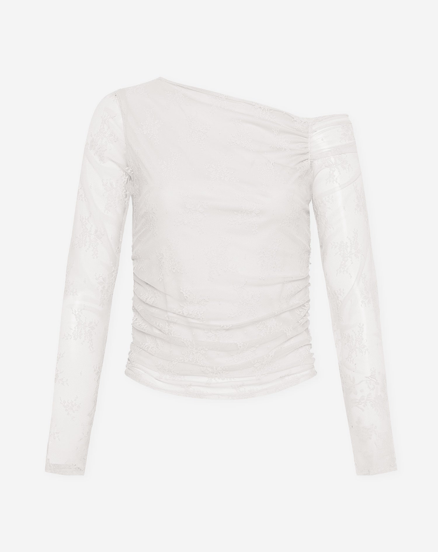 LACE OFF SHOULDER RUCHED TOP CREAM