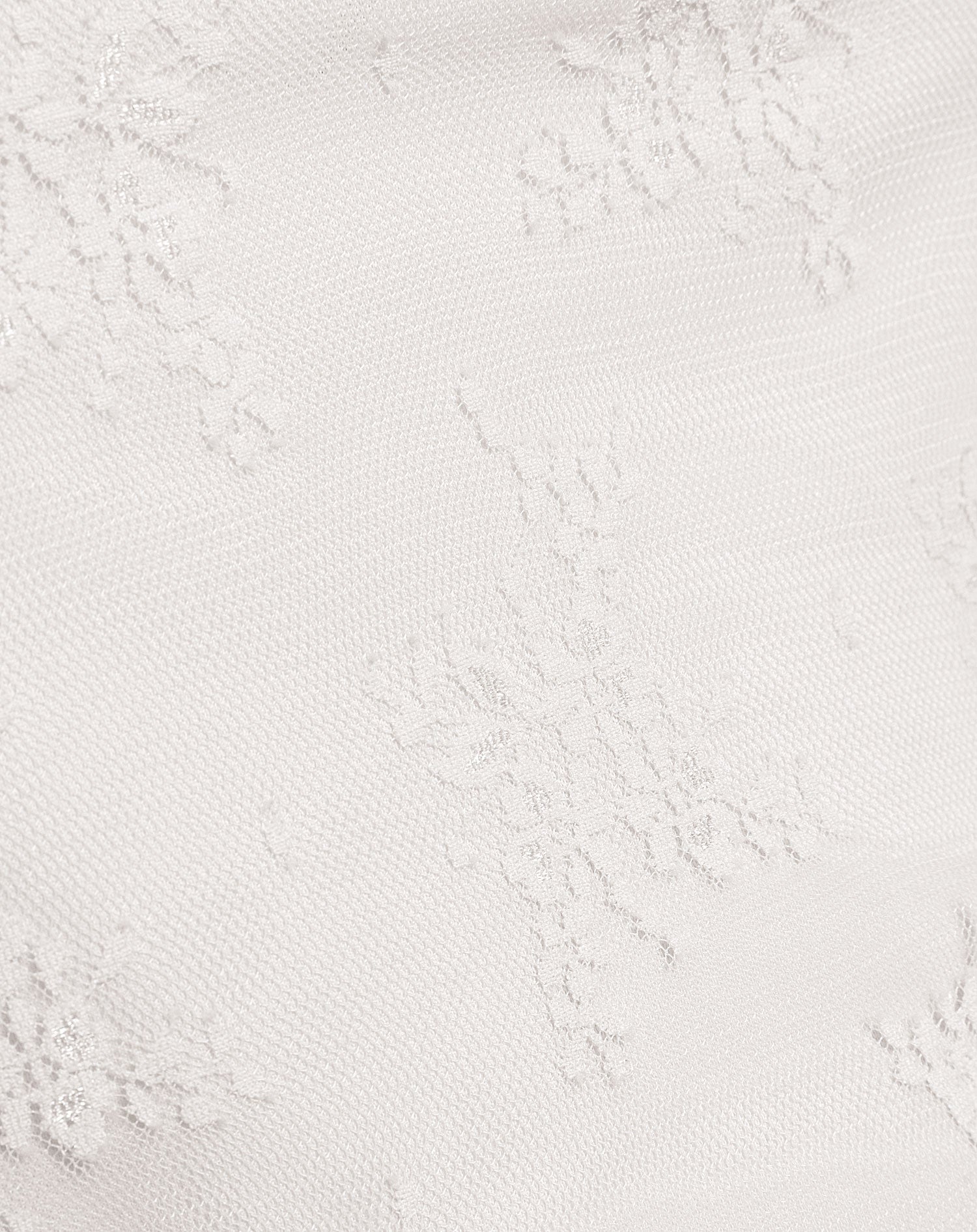 CreamThe top is made of a beige mesh fabric. The top is not lined at the sleeves. The top has an off shoulder fit and contains stretch.