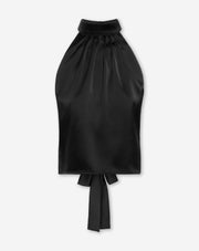 SATIN HALTER BOW TOP BLACK