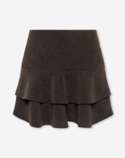 BruinDe skirt is gemaakt van een mooie bruine corduroy stof en heeft ruffels aan de onderkant. Aan de zijkant van de skirt zit een ritssluiting.