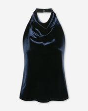 JULIE VELVET HALTER TOP MARINEBLAUW