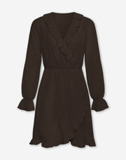 MOUSSELINE RUFFLE V-NECK WRAP DRESS BRUIN €39,99