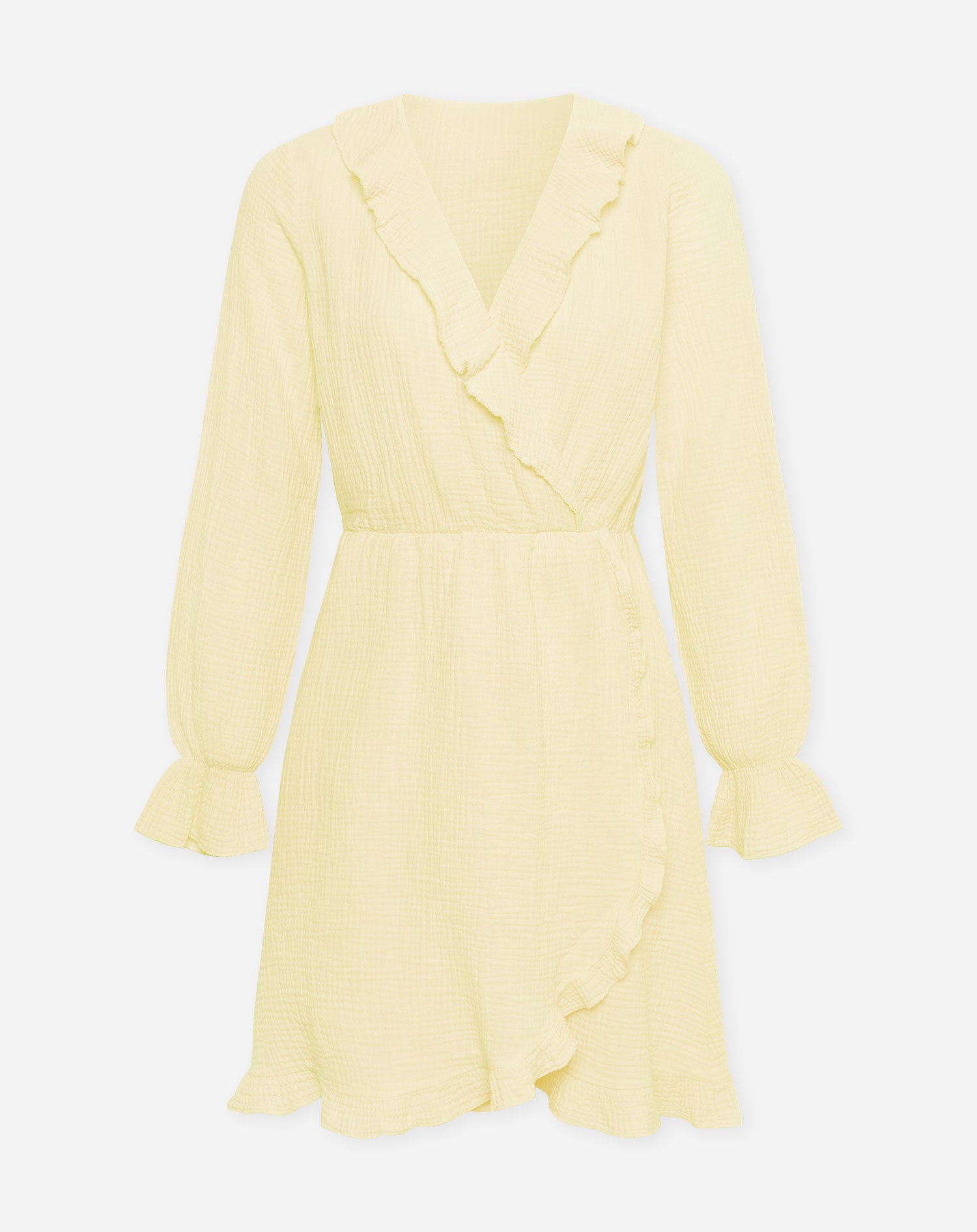 MOUSSELINE MAXI RUFFLE DRESS ZAND