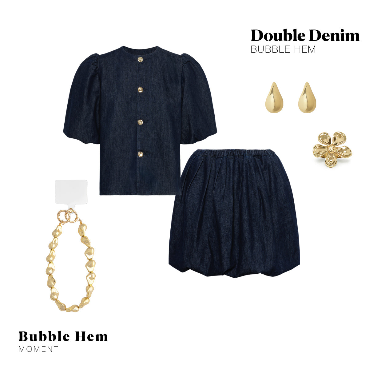Kort gezegd: een bubble hem ontstaat doordat de zoom van een kledingstuk naar binnen wordt genaaid, waardoor er een soort 'opgeblazen' effect ontstaat. De trend kenmerkt zich door volume en beweging in het silhouet. Door de nadruk op de taille en het luchtige karakter van de ballonvorm, ontstaat er een flatterend effect dat speels en vrouwelijk is.
