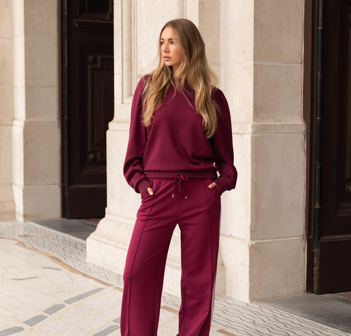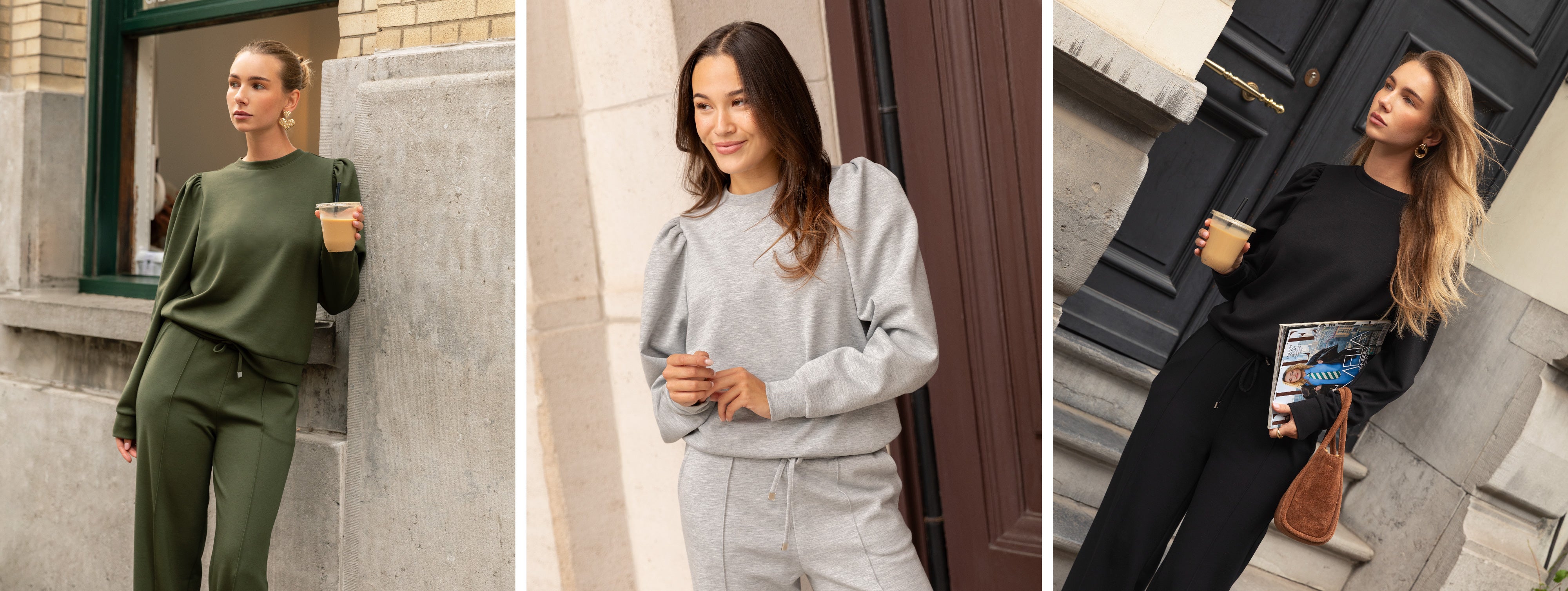 De sweaters staan ook fantastisch op jeans voor een casual outfit, terwijl de pintuck broek perfect te combineren is met een poplin blouse of een oversized tee voor een relaxte, maar stijlvolle look. Voor een trendy vibe kies je de Cropped Sweater met sneakers, voor een classy touch de Puff Sleeve Sweater met enkellaarsjes of loafers. Zo creëer je keer op keer een outfit die comfortabel, veelzijdig en altijd verzorgd oogt – of je nu thuis bent, onderweg of een dag vol afspraken hebt.