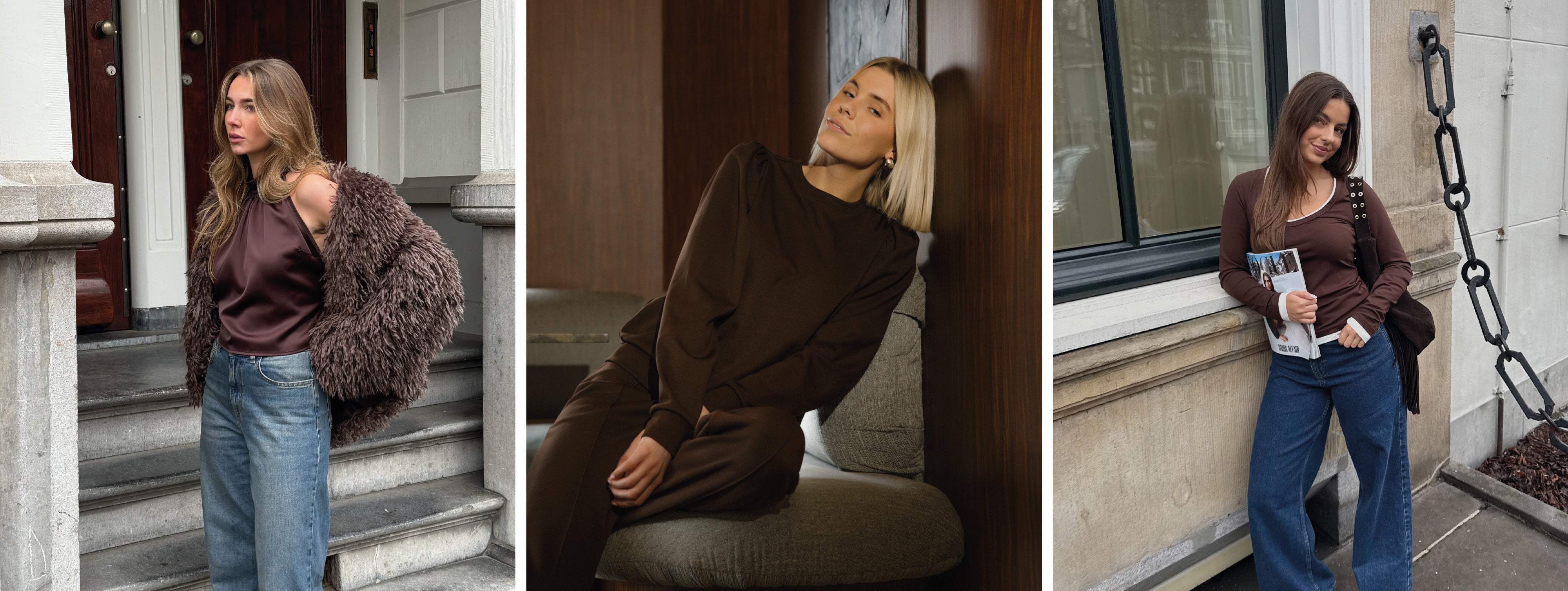 Bruin was lange tijd de underdog naast zwart en beige, maar dit seizoen komt de kleur overtuigend terug als dé nieuwe neutral. En dat maakt hem verrassend draagbaar: chic genoeg voor de avond, en cosy genoeg voor dagelijks gebruik.