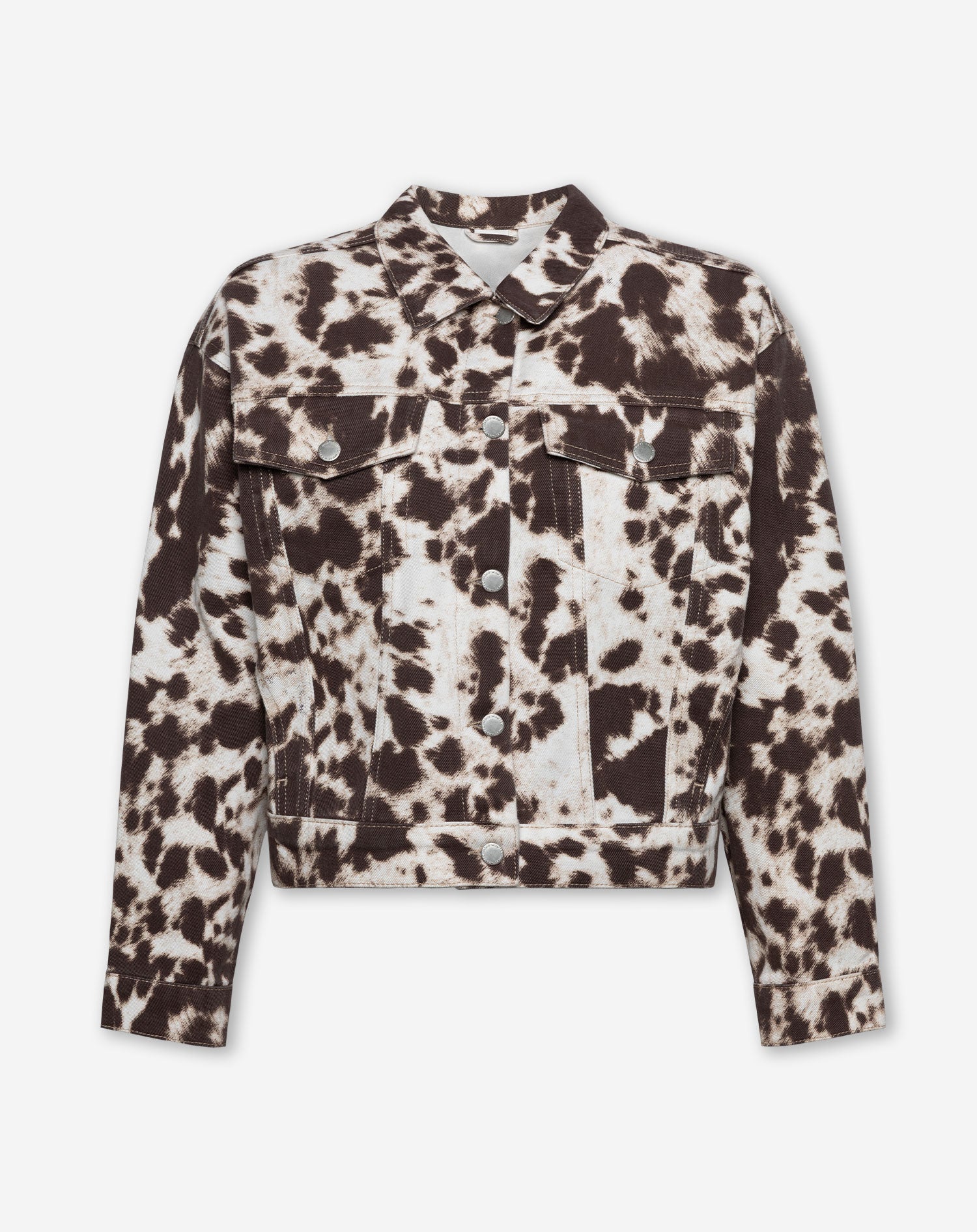 Dit item is gemaakt van denim stof met een koeien patroon. Het jasje heeft zilverkleurige knopen. Combineer het jasje met de bijpassende jeans voor een trendy co-ord look.