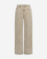 De tee is gemaakt van een crèmekleurige katoenen stof, heeft lange mouwen met een lace insert aan beide mouwen.