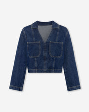DonkerblauwDeze top is gemaakt van een blauwe, denim stof. De top heeft een v-hals, lange mouwen en borstzakken. Combineer de top met de bijpassende skort voor een trendy look.