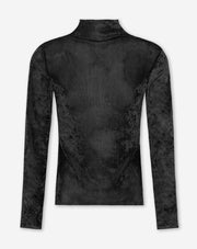De top is gemaakt van een mooie zwarte velvet stof. De top heeft lange mouwen en een hoge nek.